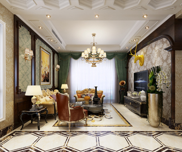 歐式風(fēng)格強(qiáng)調(diào)以華麗的裝飾、濃烈的色彩、精美的造型達(dá)到華貴的裝飾效果歐式客廳頂部用大型燈池,并用華麗的枝形吊燈營造氣氛。門窗上半部做成弧形,并用帶有花紋的石膏線勾邊。