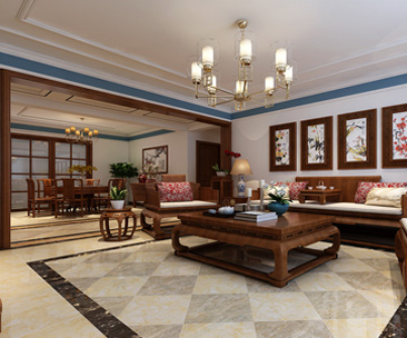 吸取了歐式風(fēng)格的“形神“特征,在設(shè)計上追求空間變化的連續(xù)性和形體變化的層次感。室內(nèi)多采用帶有圖案的壁紙、地毯、窗簾、床罩、帳幔及古典裝飾畫,畫框在造型設(shè)計上既要突出凹凸感